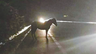 9月2日晚,一輛裝有30多匹馬的貨車(chē)行駛在連霍高速上,因貨車(chē)后門(mén)沒(méi)有鎖好,在途經(jīng)連霍高速310公里南半幅時(shí),一匹馬從車(chē)上掉下來(lái)后在雨中游蕩,過(guò)往車(chē)輛紛紛躲避,情況十分危險(xiǎn)。商丘高速交警聞?dòng)嵹s來(lái),迅速采取措施,經(jīng)過(guò)20多分鐘努力,終于將這匹馬控制,并連夜交還給丟馬的貨車(chē)貨主。